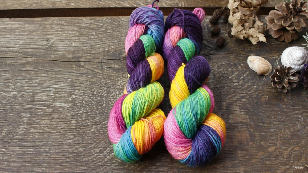 každé přadénko může být maličko jinak probarvené, na srovnávací fotce 2 přadena vlevo "Duha", 2 přadena vpravo "Neon"
