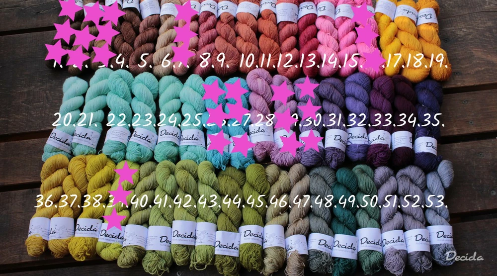jednobarevné či tón v tónu - uveďte prosím do poznámky k objednávce číslo odstínu, o který máte zájem - skladem pouze v množství, co je na fotce (prodané označeny hvězdičkou), na přání nabarvím větší množství či další odstíny - pište na mail info@decida.cz (mohu případně nafotit i vybrané odstíny vedle sebe či poradit, které se k sobě lépe hodí)