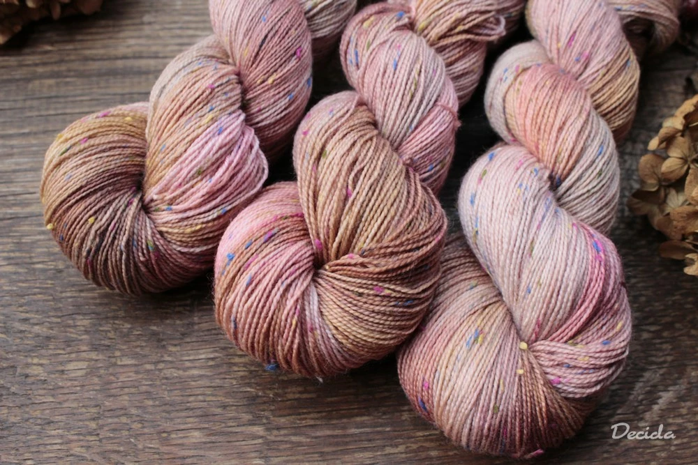 85% merino a 15% barevné nopky Donegal (polyamid)