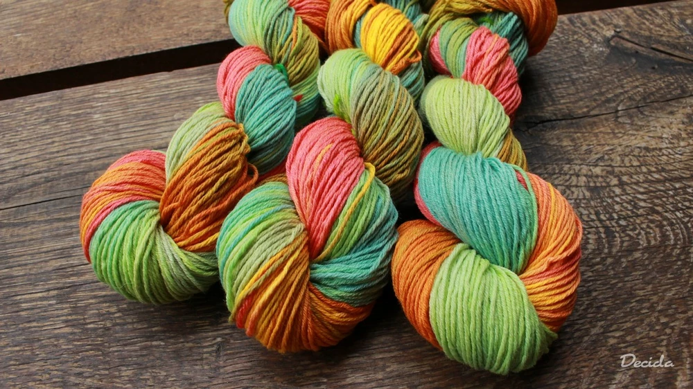 příze je ručně barvená, merino původem z Jižní Ameriky, příze má úpravu superwash