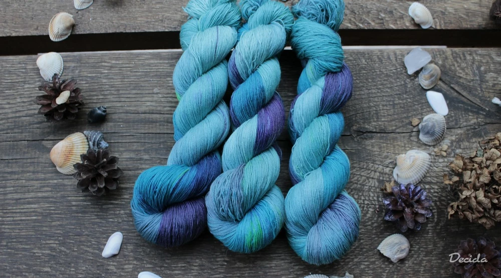 tato modrá není moc fotegenická, v závislosti na nastavení monitoru může dojít ke zkreslení fotografie- jedná se o odstíny světlé azurově modré přecházející do tlumenější světle modré (až skoro světlé modrošedé), dále jasnější sytá modrá a odstíny fialové - více probarvené - znatelnější rozdíly v barvách, na fotce více splývá do jednoho tónu (je mi líto, že nemohu nafotit věrněji, pokud by se v reálu nelíbilo, zpětné zaslání jde samozřejmě na naše náklady ♥)