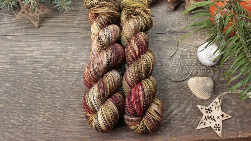 oblíbená ponožková příze nejen na ponožky, místy je skaná s černou nitkou v nepravidelných úsecích - síla vlákna je stále stejná