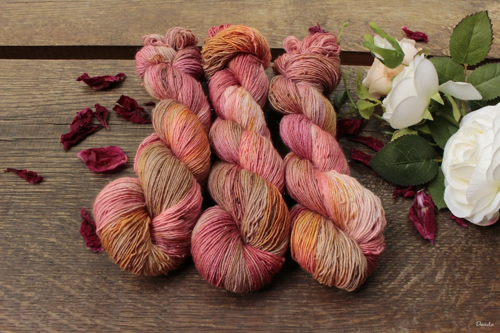 95% merino superwash jednonitka a 5% Stellina Silver