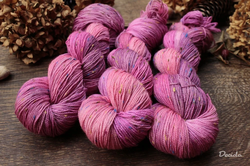 85% merino a 15% barevné nopky Donegal (polyamid)
