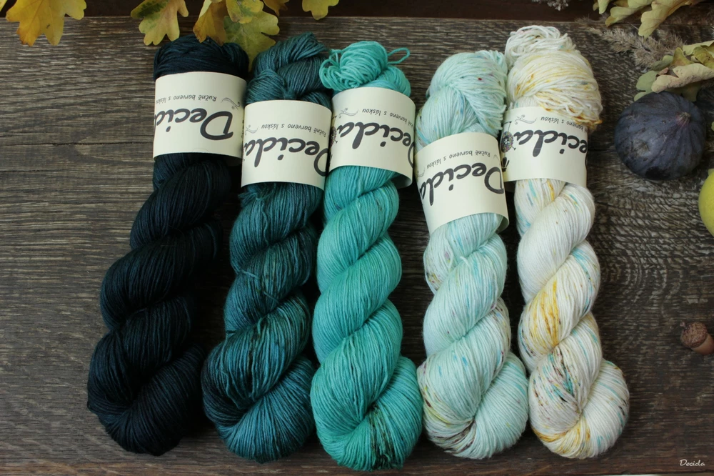 na přání ♥ speciálně sestavený set 5 přadýnek po 100g, který je možné využít na MKAL se Stephenem Westem, přadénka mají být kontrastní, jednobarevné, či jen pouze jemně tón v tónu či lehce "speckled" - oťupkané :-), barvy se budou potkávat vzájemně jedna s druhou, proto musí být dostatečně kontrastní a ne nijak divoce probarvené :-)