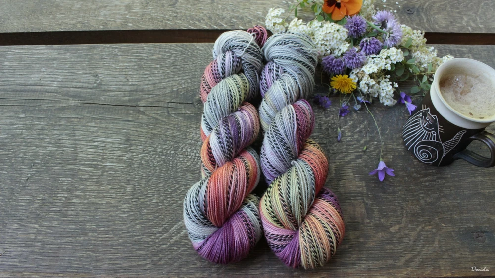 Novinka - speciální ponožková příze s černou nitkou v nepravidelných úsecích