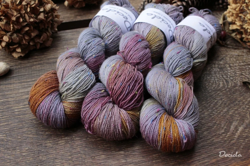 85% merino a 15% barevné nopky Donegal (polyamid)