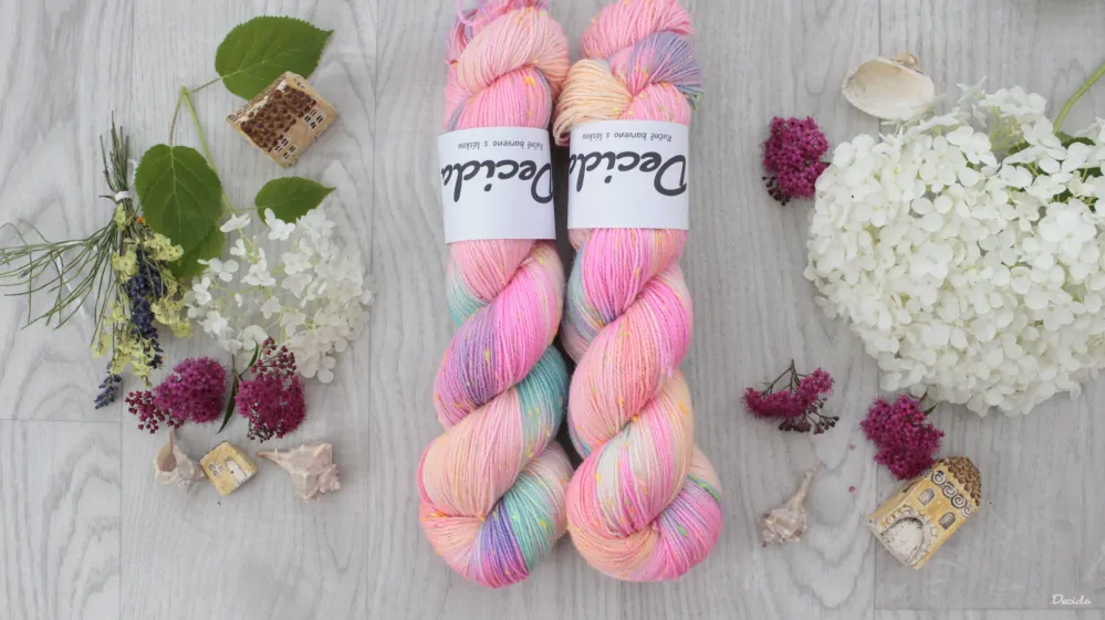 85% merino superwash a 15% barevné nopky Donegal (polyamid)