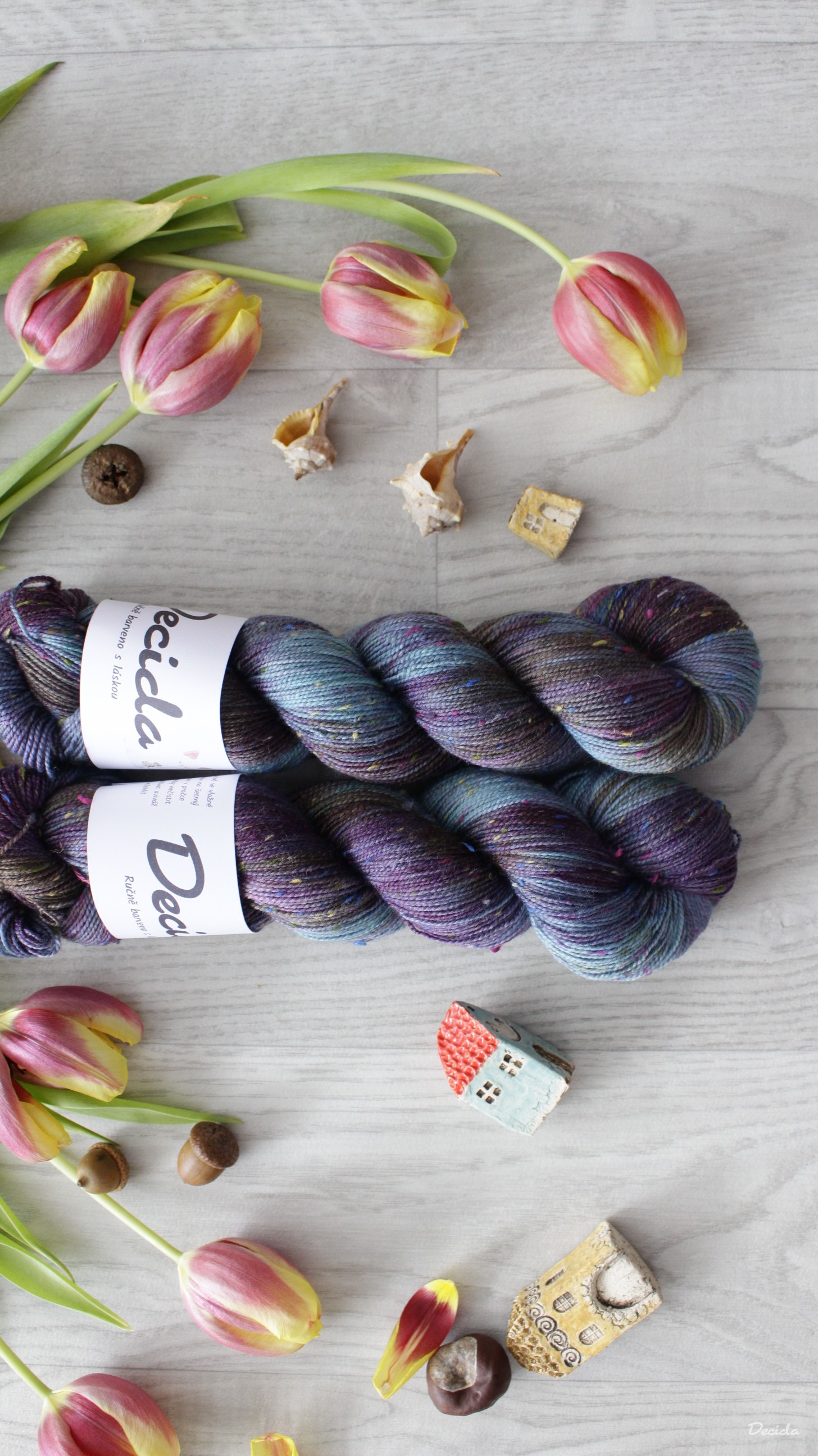 85% merino superwash a 15% Donegal barevné nopky (polyamid)