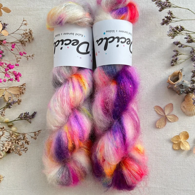 - "Aurora Pulse"- 64% superkid mohér 3% merino 10% flitry 23% hedvábí 400m/50g