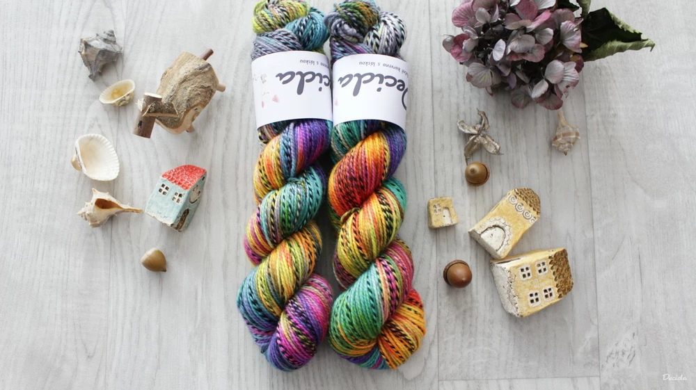speciální ponožková příze s černou nitkou v nepravidelných úsecích, hodí se nejen na ponožky, ale díky své krásné jemnosti i na šátky, svetry a vlastně cokoliv, co Vás napadne...