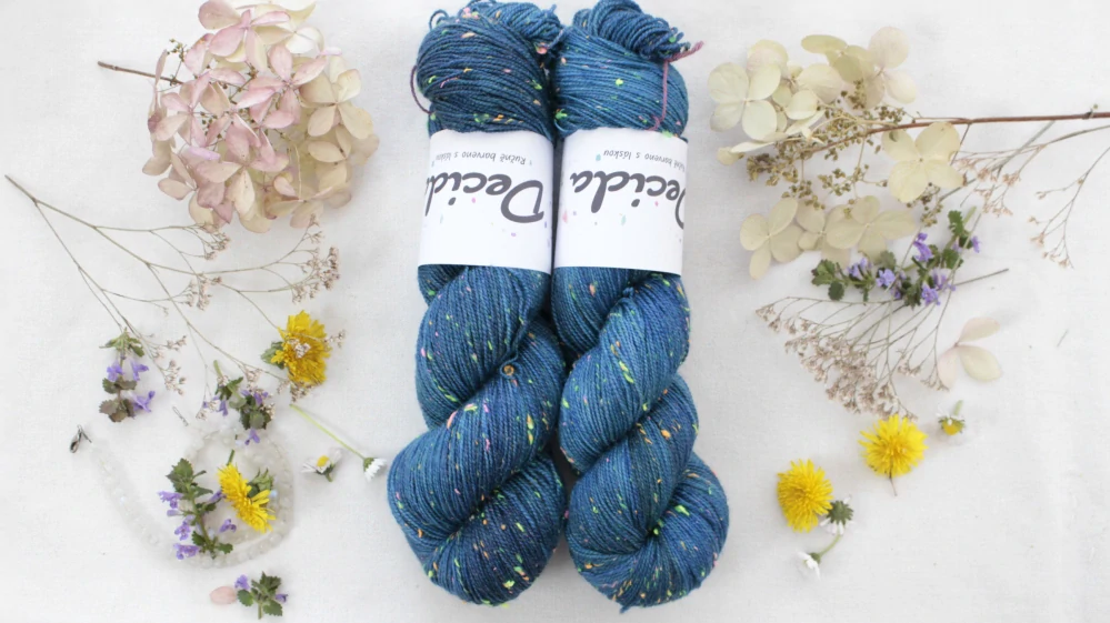 85% merino superwash a 15% barevné nopky Donegal (polyamid)