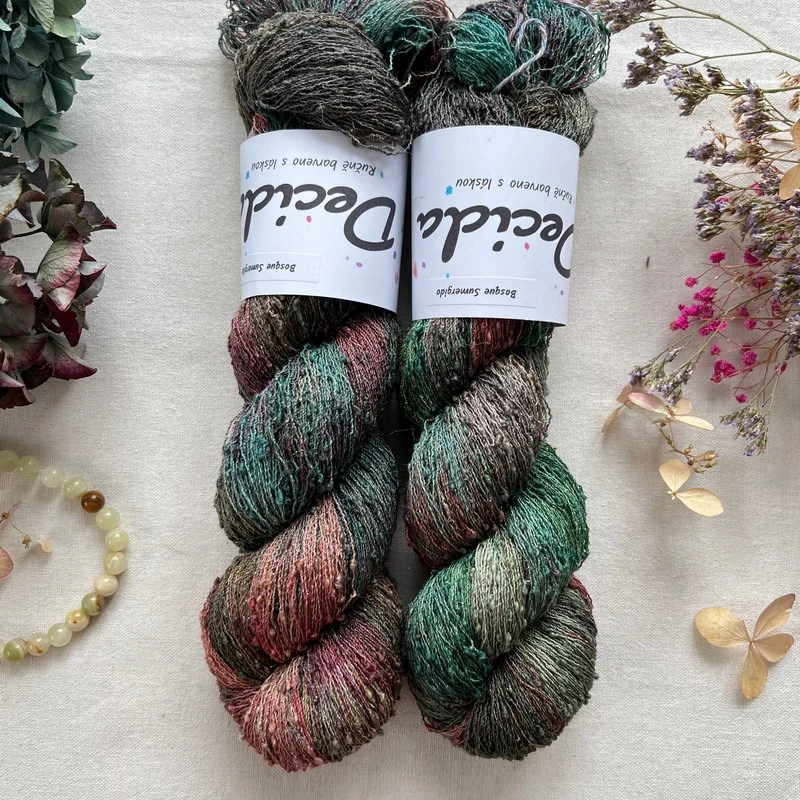 - "Bosque Sumergido" 42% hedvábí 26% baby alpaka 26% merino superwash a 6% zlatá stellina 980m