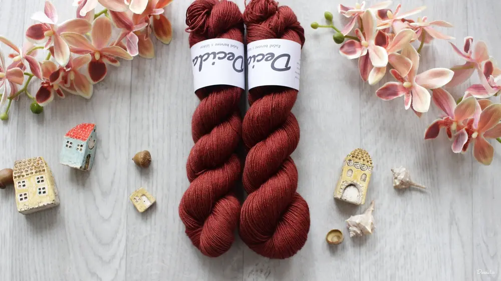 - "Červené kaštany" - 60%merino 20%hedvábí a 20% yak