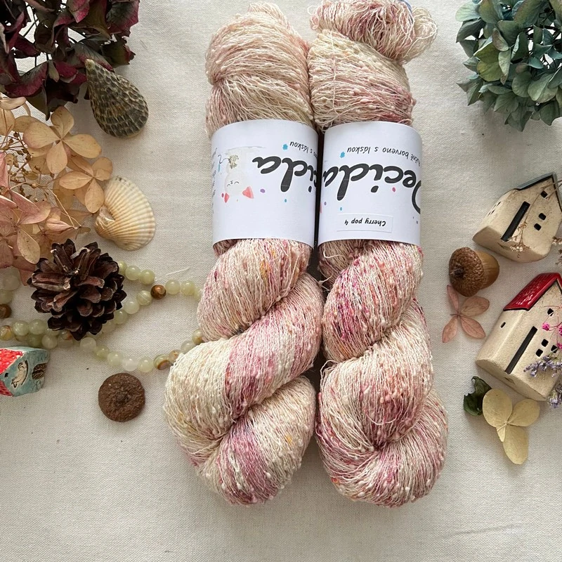- "Cherry pop 4" 42% hedvábí 26% baby alpaka 26% merino superwash a 6% zlatá stellina 980m