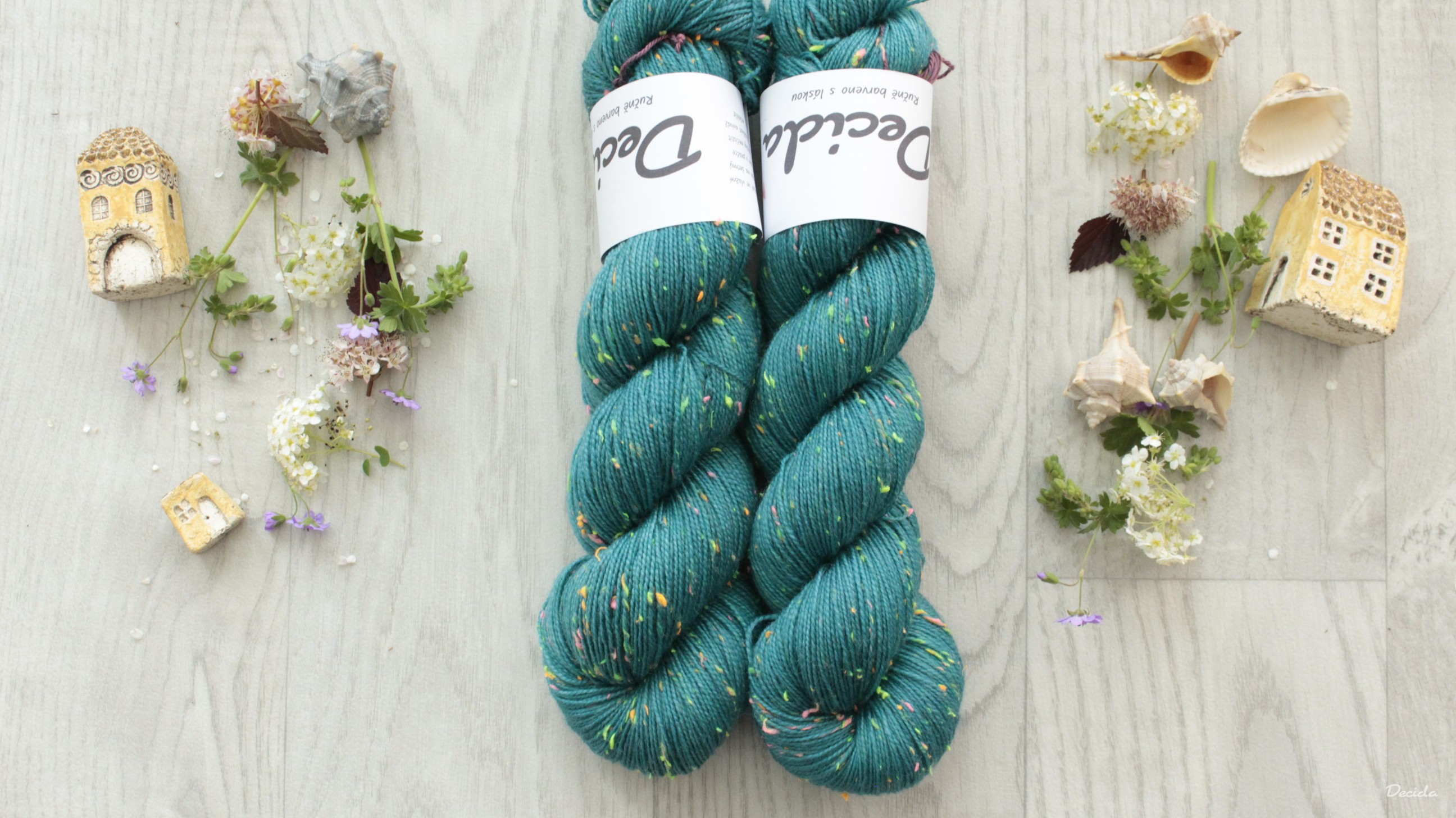 85% merino superwash a 15% barevné nopky Donegal (polyamid)