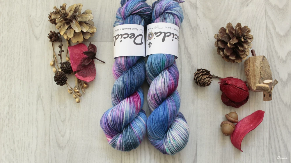 každé přadénko je maličko jinak probarvené, pro rozměrnější projekty (svetry) doporučuji střídat dvě přadena po řadách a při změně na další klubko pozvolna prostřídat s předcházejícím klubkem (barevný efekt je pak celistvější)