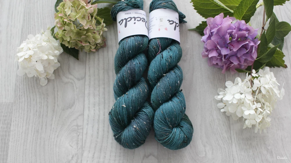 85% merino a 15% barevné nopky Donegal (polyamid)