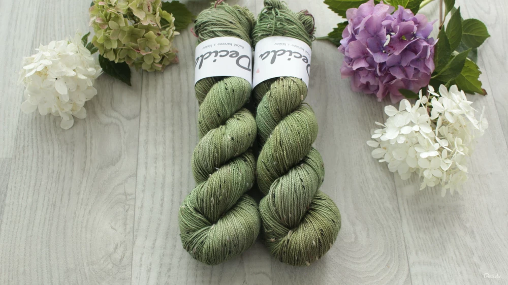85% merino a 15% barevné nopky Donegal (polyamid)