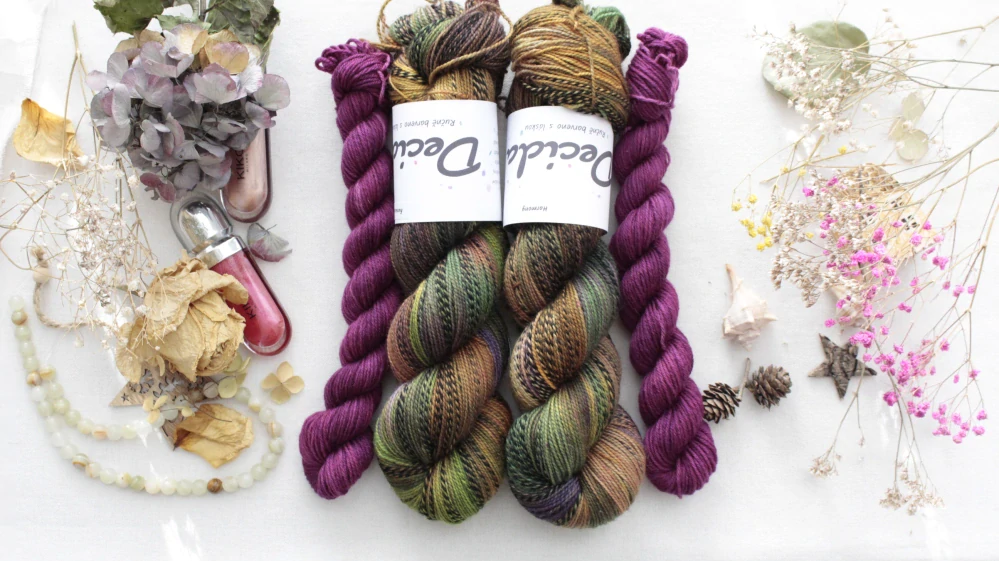 set 120g - velké 100g přadeno 80% merino se superwash/ 20% nylon dvojnitka 365m, 20g přadénko ponožkovka 75% merino sw 25% polyamid cca 73m (365m/100g)