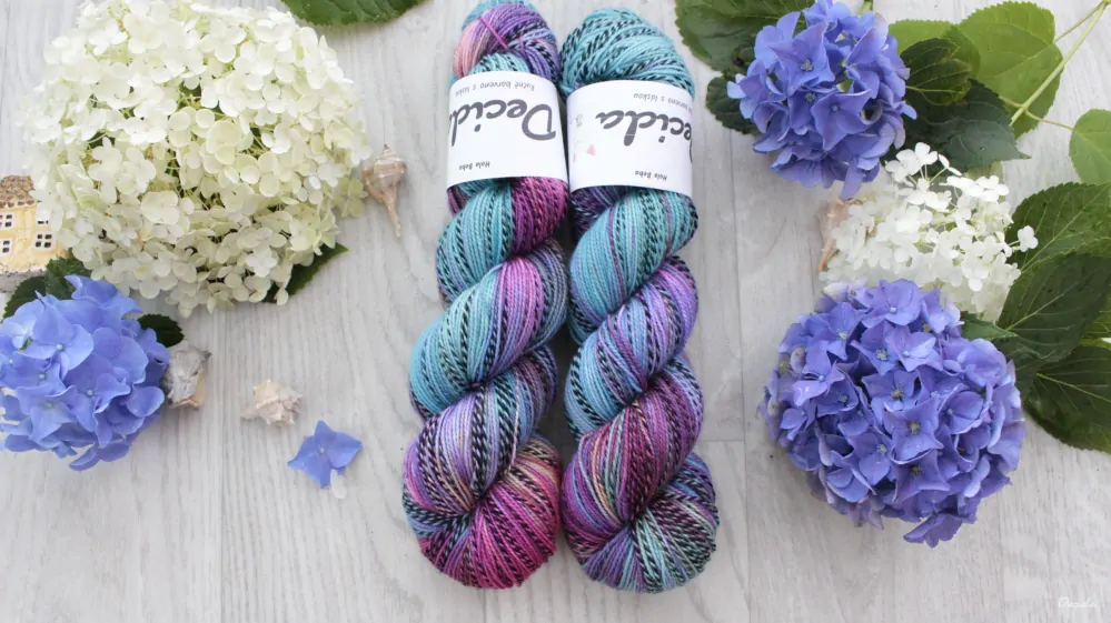 speciální ponožková příze s černou nitkou v nepravidelných úsecích, hodí se nejen na ponožky, ale díky své krásné jemnosti i na šátky, svetry a vlastně cokoliv, co Vás napadne...