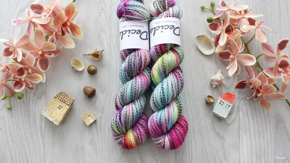 speciální ponožková příze s černou nitkou v nepravidelných úsecích, hodí se nejen na ponožky, ale díky své krásné jemnosti i na šátky, svetry a vlastně cokoliv, co Vás napadne...