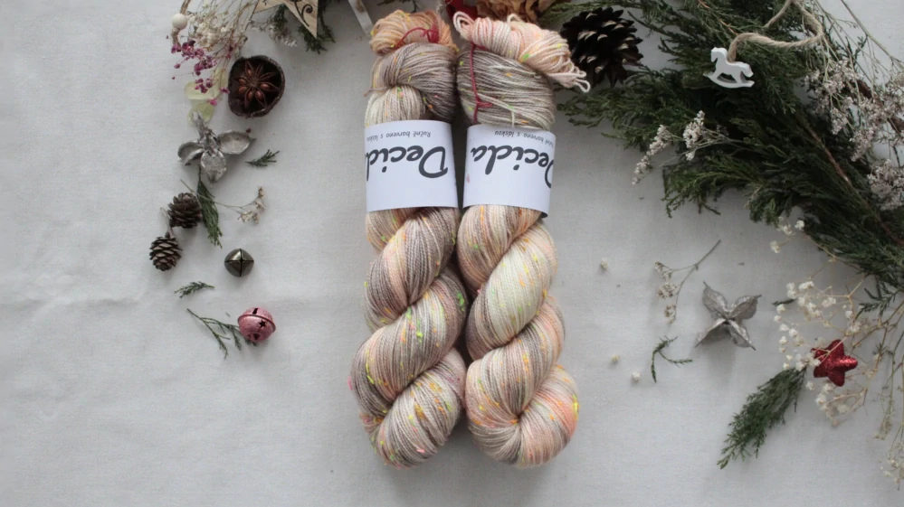 85% merino superwash a 15% barevné nopky Donegal (polyamid)