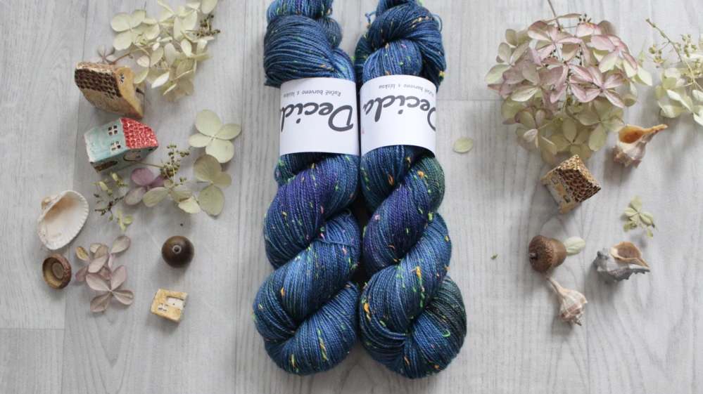 85% merino superwash a 15% barevné nopky Donegal (polyamid)