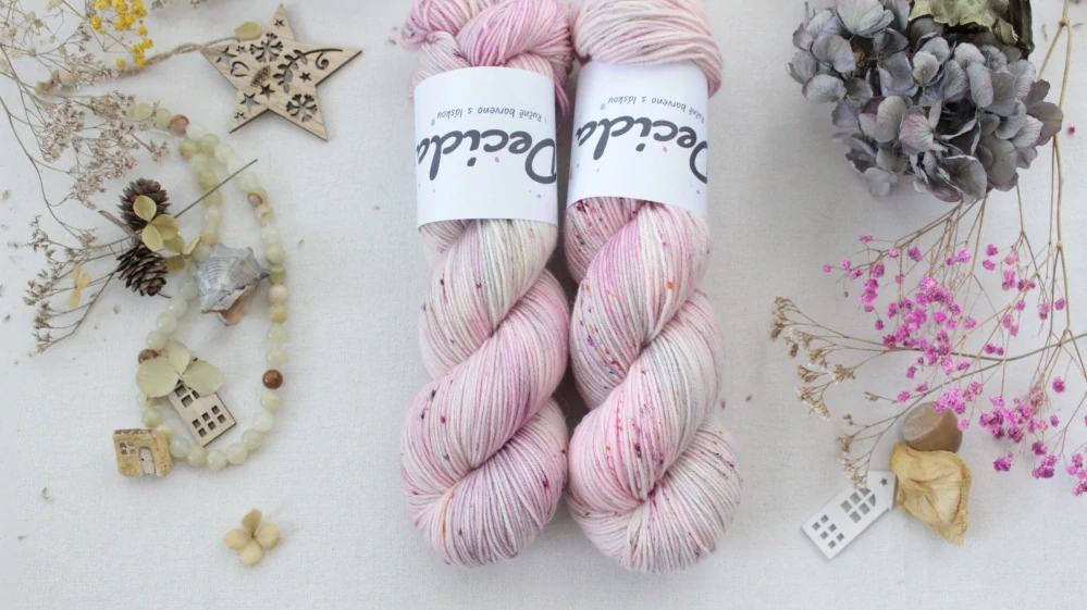 každé přadénko je trochu jinak probarvené, na rozměrnější úplety doporučuji plést na střídačku ze dvou klubek a vzájemně je pruhovat