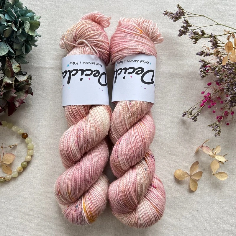 "Pink Champagne Mist" - 75% merino sw 20% nylon 5% zlatá stellina 400mNení skladem369,00 Kč/ ks304,96 Kč bez DPH