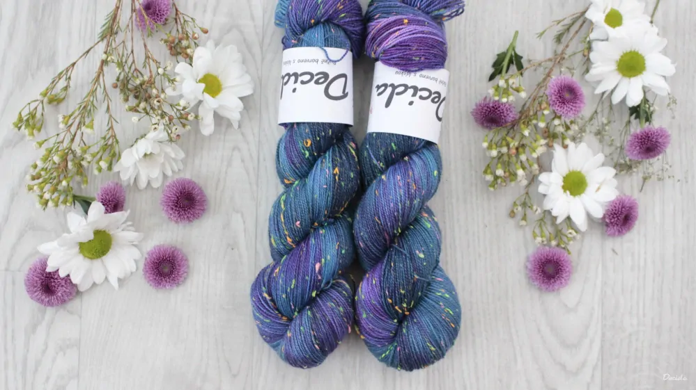 85% merino superwash a 15% barevné nopky Donegal (polyamid)