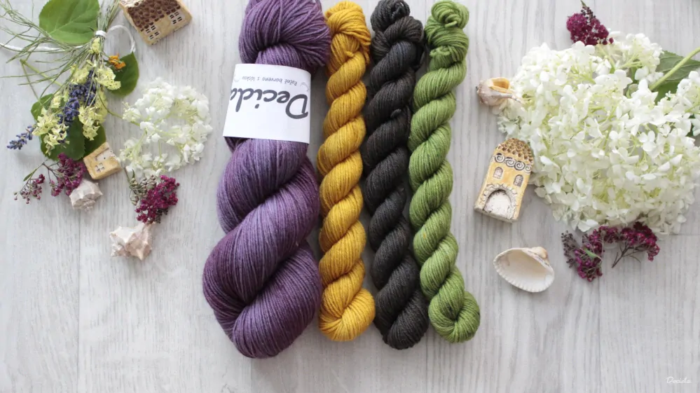 Set obsahuje 1x 100g přadeno a 3x 20g mini přadena, vše ve stejné přízi - ponožkové merino fingering75% jemné merino sw/ 25% polyamid, 100g = cca 365m