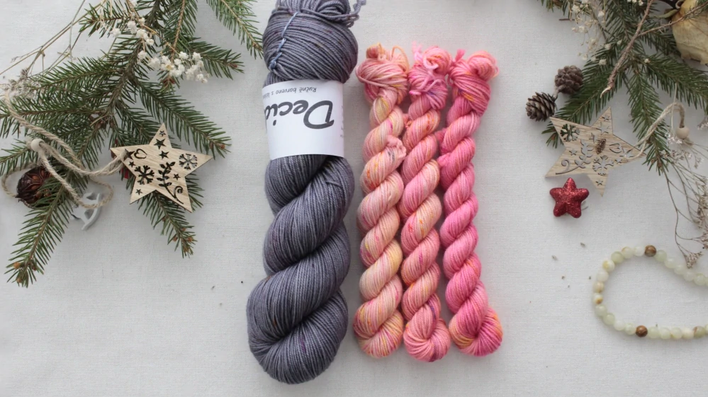 Pozor - v návodu je použita pouze jedna doplňková barva v celkové spotřebě 73,5-91,5 metru, já jsem se pokusila vytvořit fade s použitím 3 mini přaden - každé má 20g a návin cca 60m, u hlavní barvy je uvedená spotřeba 100-119m, tudíž Vám zbyde dost jak od hlavní tak doplňkových barev, ideální použít na ladící rukavičky či nákrčník
