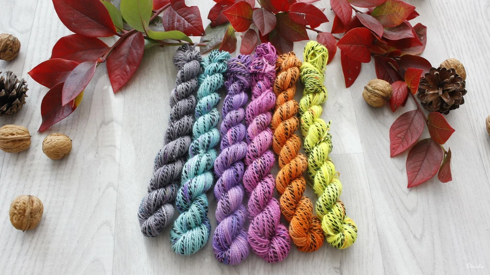 Novinka - speciální ponožková příze s černou nitkou v nepravidelných úsecích