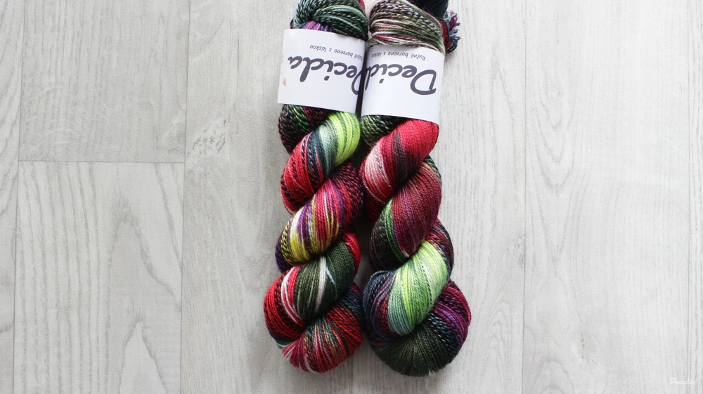 speciální ponožková příze s černou nitkou v nepravidelných úsecích, hodí se nejen na ponožky, ale díky své krásné jemnosti i na šátky, svetry a vlastně cokoliv, co Vás napadne...
