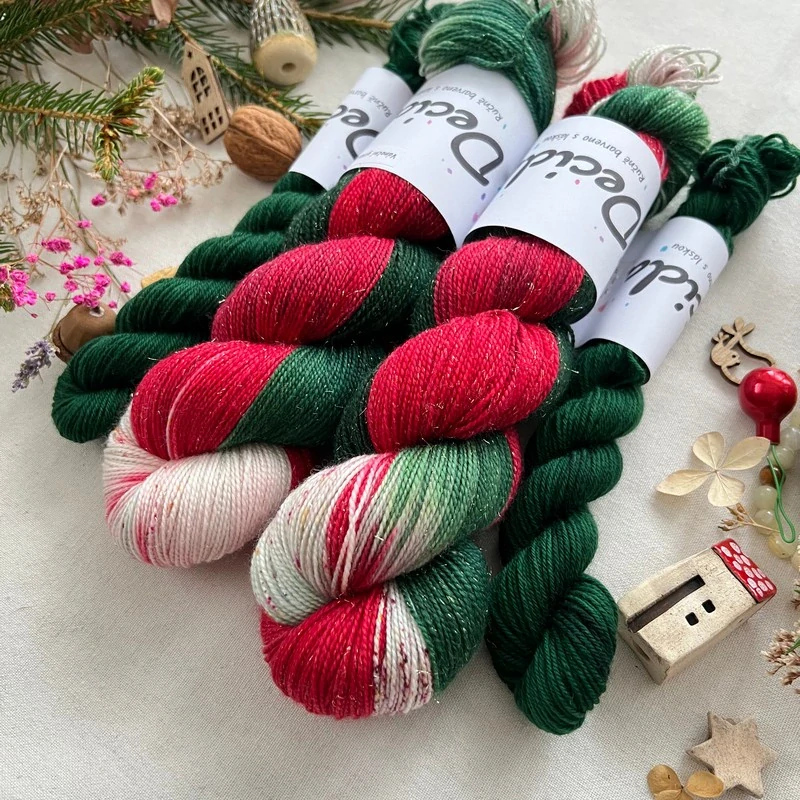 "Vánoční girlanda 7 - zelená" - 120g Merino sw/Nylon/Zlatá stellina 400mNení skladem460,00 Kč/ ks380,17 Kč bez DPH