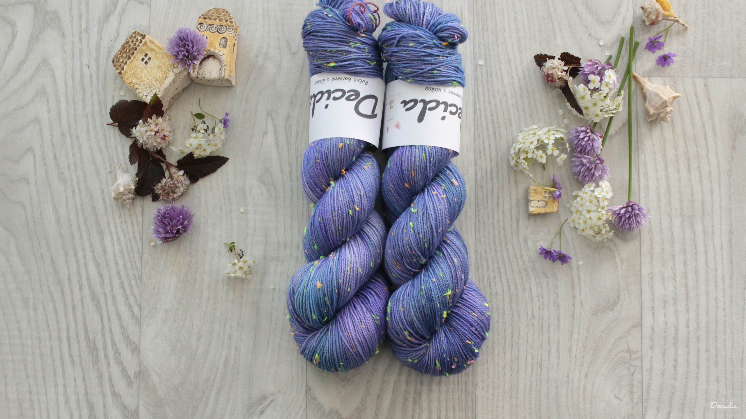 85% merino superwash a 15% barevné nopky Donegal (polyamid)