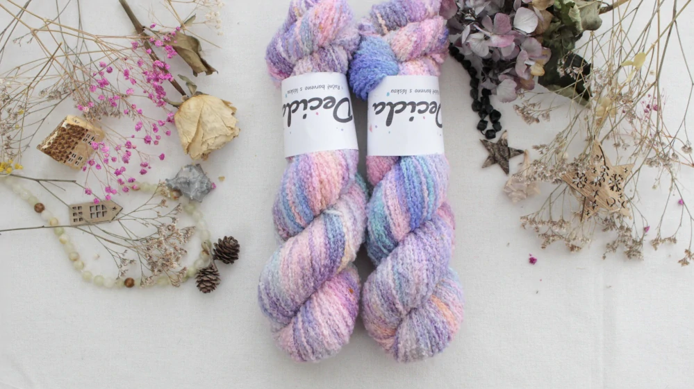 Novinka - efektní Boucle příze s krásnou texturou, složení jemňoučké extra fine merino superwash. Pletenina vytváří jemný žinylkový efekt, barvy jsou v úpletu jemně rozostřené. Pletenina drží krásně tvar a textura příze vytváří jemný plstěný vzhled. Bude super na doplňky - čepice, šály, ale i krásné ňuchňavé svetry.