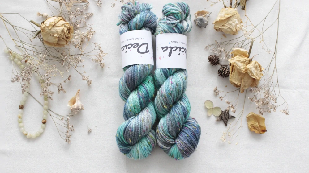 85% merino superwash a 15% Donegal barevné nopky (polyamid)