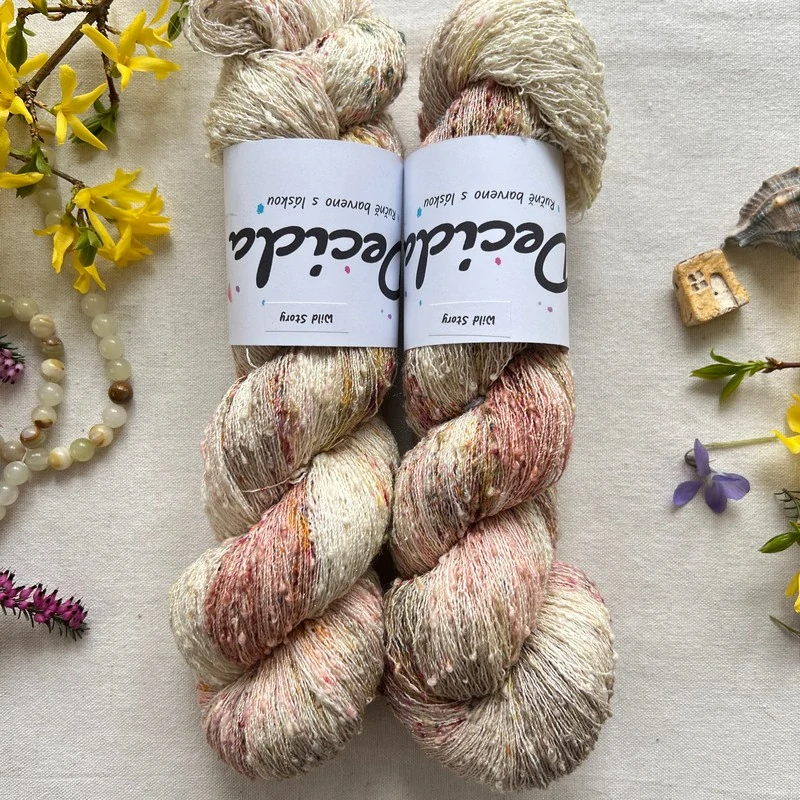 - "Wild Story" 42% hedvábí 26% baby alpaka 26% merino superwash a 6% zlatá stellina 980m