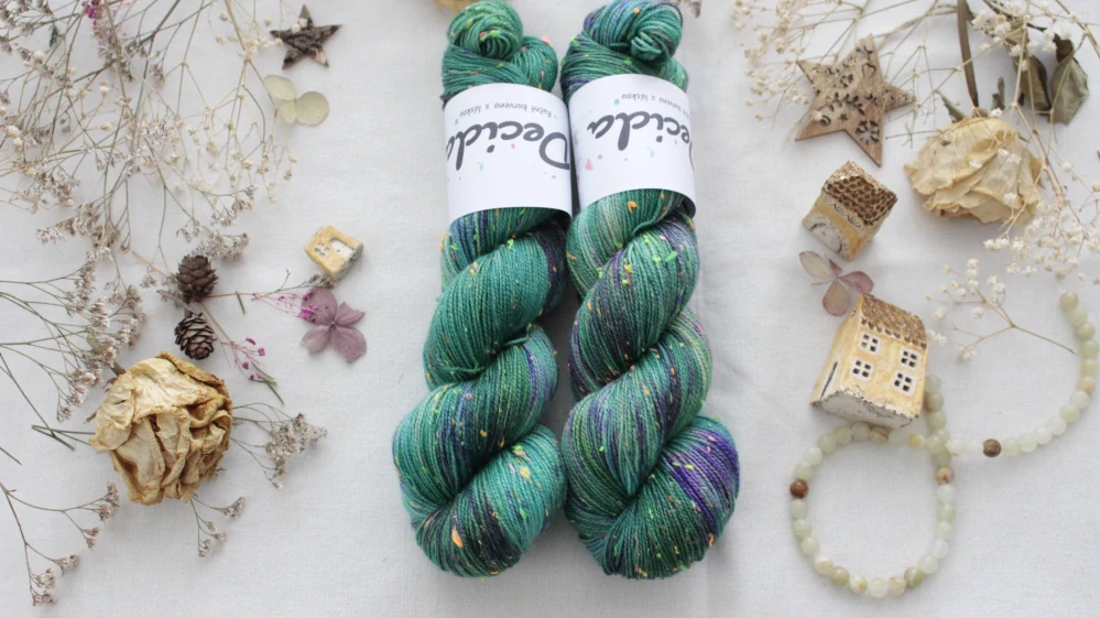 85% merino superwash a 15% barevné nopky Donegal (polyamid)