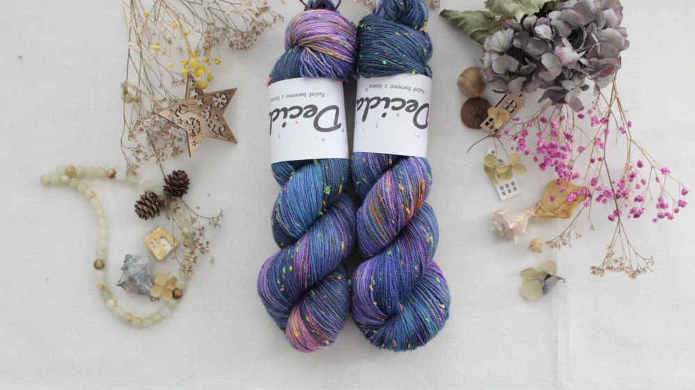 85% merino superwash a 15% barevné nopky Donegal (polyamid)